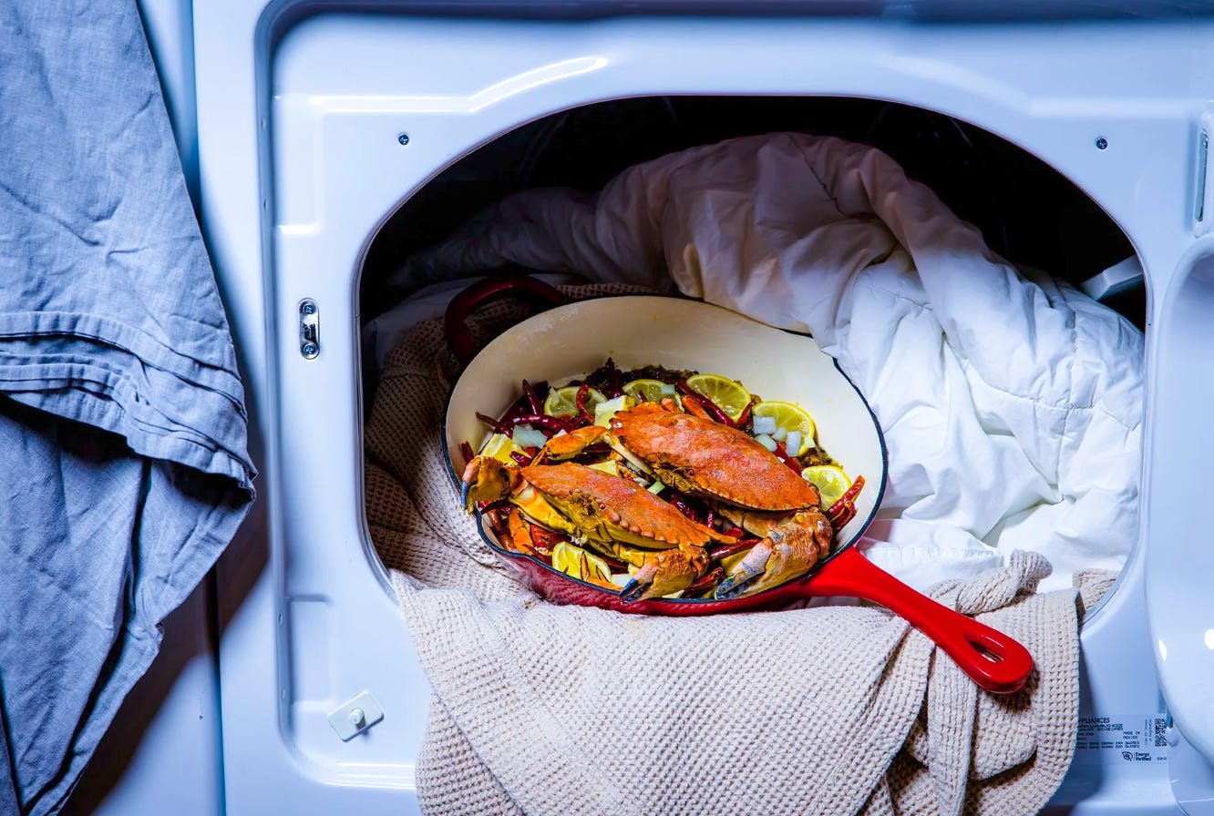 Messy, fragrant, and worth every napkin. This simple crab recipe is full of a delicate sauce that’s equal parts sweet, spicy, and impossible to stop eating. Crystal Wapehpah of Oakland’s Wapehpah’s Kitchen definitely knows a thing or two about cozy comfort.